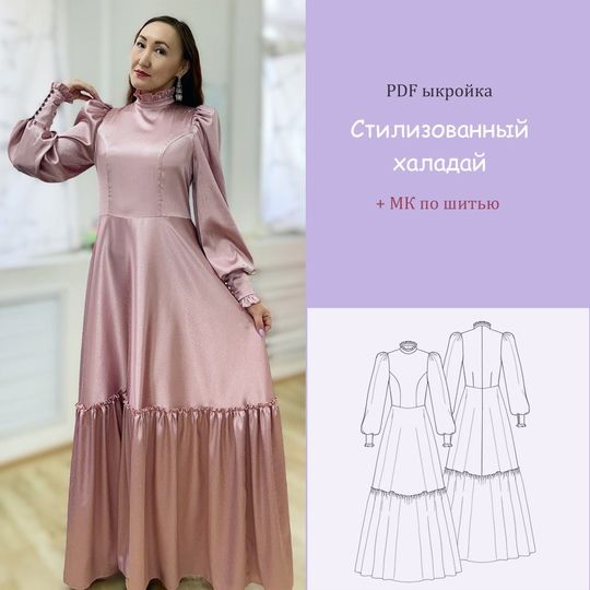 С помощью этой электронной выкройки вы сможете сшить изысканное платье халадай в стилизованном исполнении.