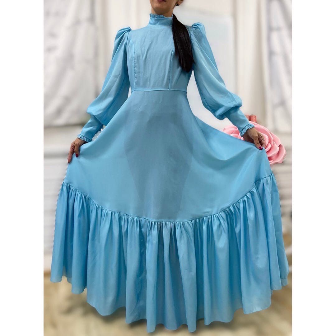 Создайте стильное платье халадай с рельефным лифом, юбкой полусолнце с оборками и объемными рукавами. Подходит для размеров 42–52.