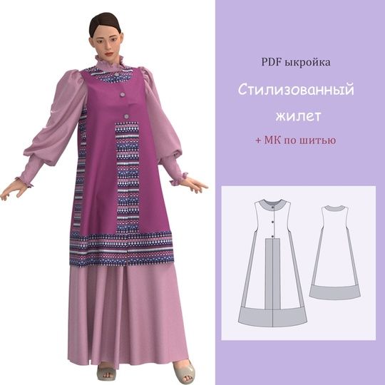 Создайте уникальный стилизованный жилет своими руками с помощью моей готовой выкройки! Выкройка доступна в формате PDF в натуральную величину, что позволяет легко распечатать ее на принтере и собрать по схеме.