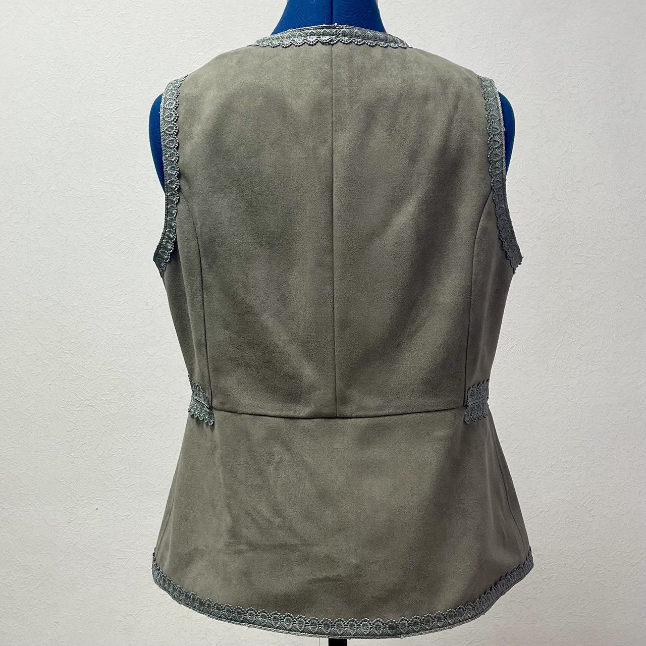 Жилет застёгивается сбоку на пришивную кнопку и завязывается аккуратной лентой. Подходит для пошива из искусственной замши и костюмных тканей. Благодаря пошаговому мастер-классу справится даже начинающий.